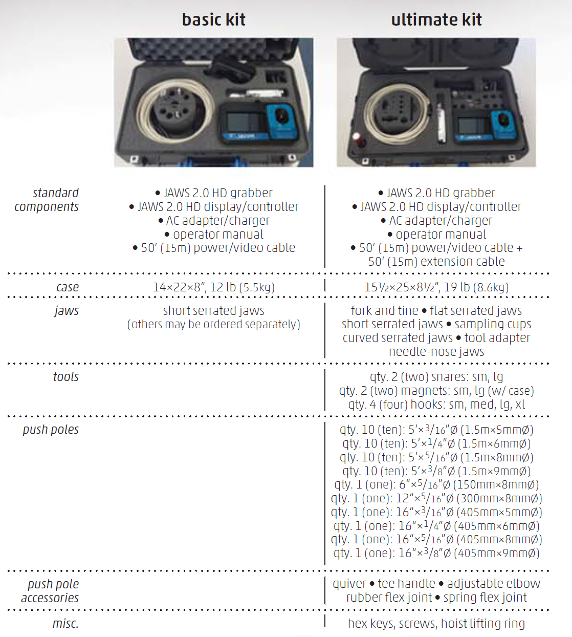 jaws open 2.75” (70mm) • tool submerges to 100’ (30m) • system deploys anywhere on batteries (12 Vdc, 15W NiMH)