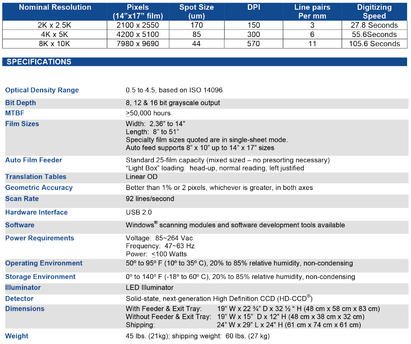 • NDT-designed for radiographic film digitization